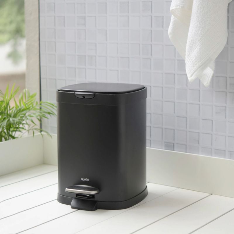 Lixeira Pedal e Balde Brinox Frame 6 Litros Aço Escovado Preto