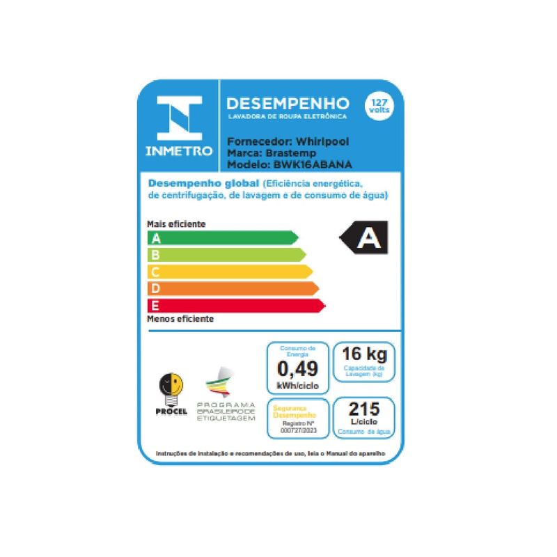 A nova Máquina de Lavar Brastemp 16Kg com Ciclo Tira Manchas Branco BWK16AB - 127 Volts