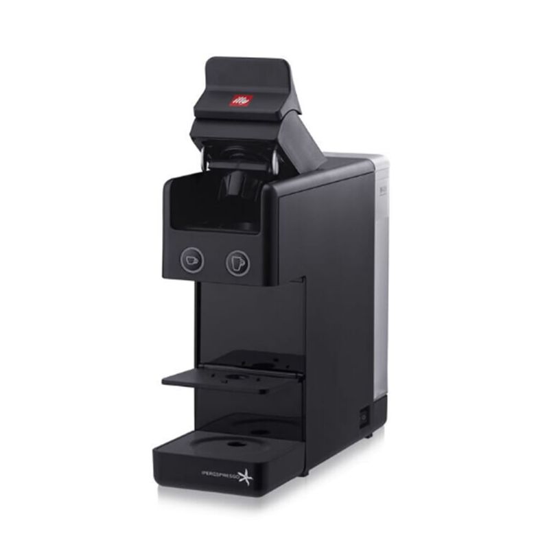 Com a nova máquina Y3.3 é possível preparar uma xícara de espresso e café coado tudo com o toque de um botão. O porta cápsulas adapta-se tanto para a cápsula iperespresso para café espresso (lata com 21 un) quanto para a cápsula iperespresso para café coado (pacote com 18un). O primeiro botão é para espresso e o segundo botão é para coado.