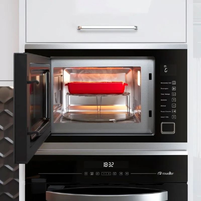 O Micro-ondas de Embutir Mueller 25 Litros Preto MMO0225G1 - 127 Volts é perfeito para você descongelar, aquecer e preparar receitas. Possui grill dourador que finaliza as suas receitas, deixando seus pratos muito mais crocantes!