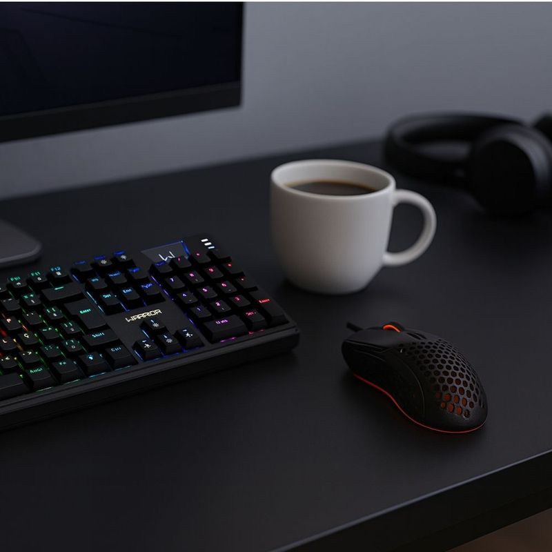 Esse combo é a escolha perfeita para gamers que não abrem mão de precisão, velocidade e estilo em cada partida. Com o Mouse Gamer Hive da Warrior e o Teclado Gamer Mecânico da linha Royal, você terá um setup completo para enfrentar qualquer desafio com confiança e desempenho.