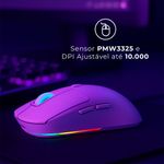 Equipado com o sensor de alto desempenho PMW3325, oferece rastreamento preciso com velocidade de até 100 IPS e aceleração de 20G, garantindo agilidade e resposta instantânea nos seus movimentos.