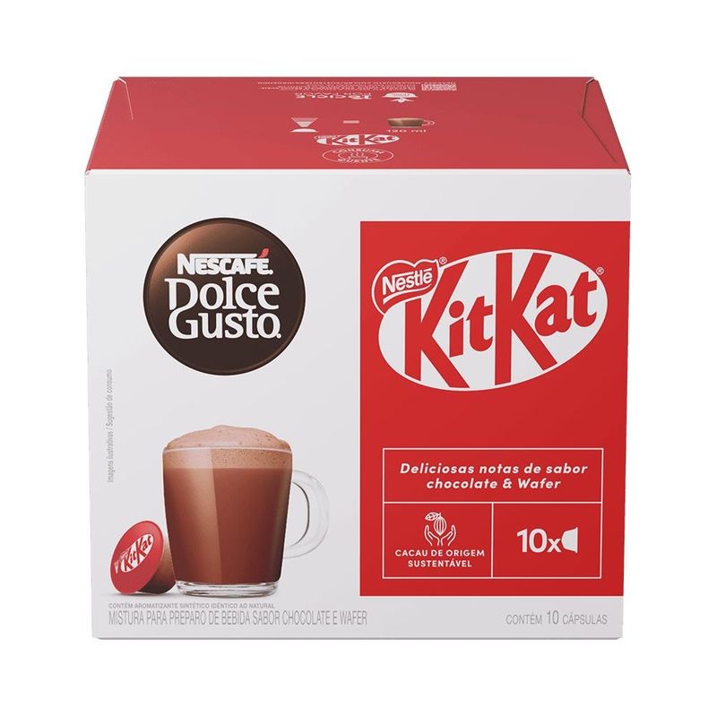 Cada caixa contém 10 cápsulas KITKAT Dolce Gusto, compatíveis com todas as máquinas da linha original Dolce Gusto.