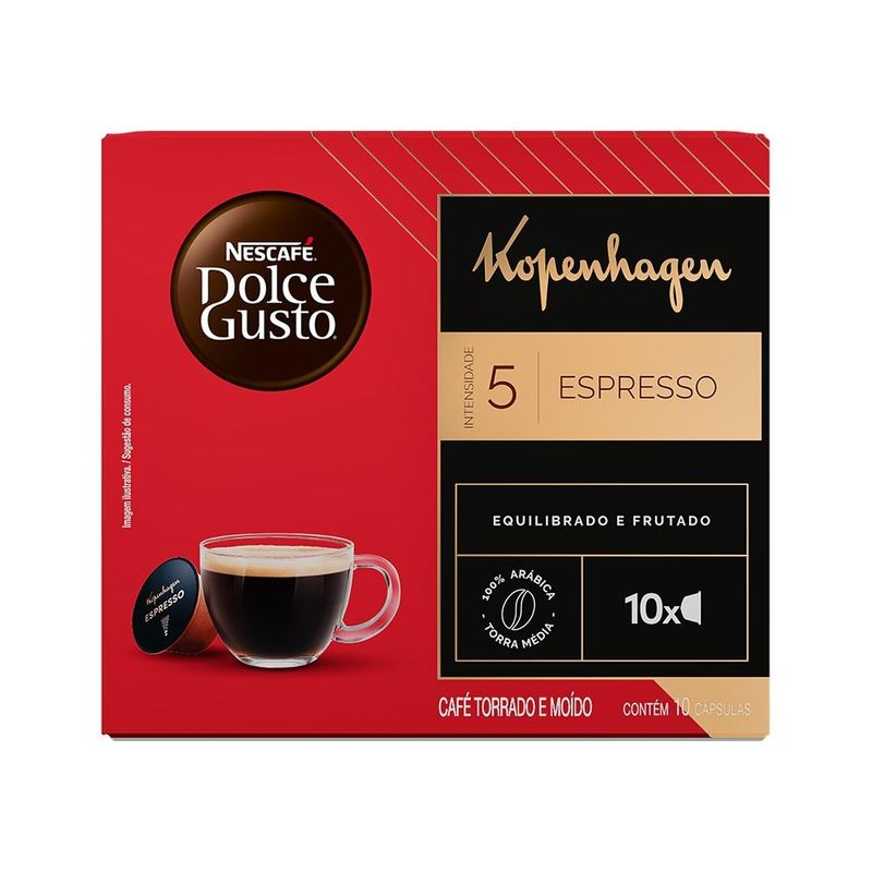 Itens Inclusos: NESCAFÉ Dolce Gusto Kopenhagen Espresso 10 cápsulas.