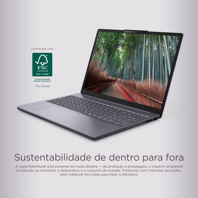 - Certificado com selos ENERGY STAR 9.0 e EPEAT Gold, o Lenovo Ideapad Slim 3 combina sustentabilidade, desempenho e tecnologia em um só equipamento.