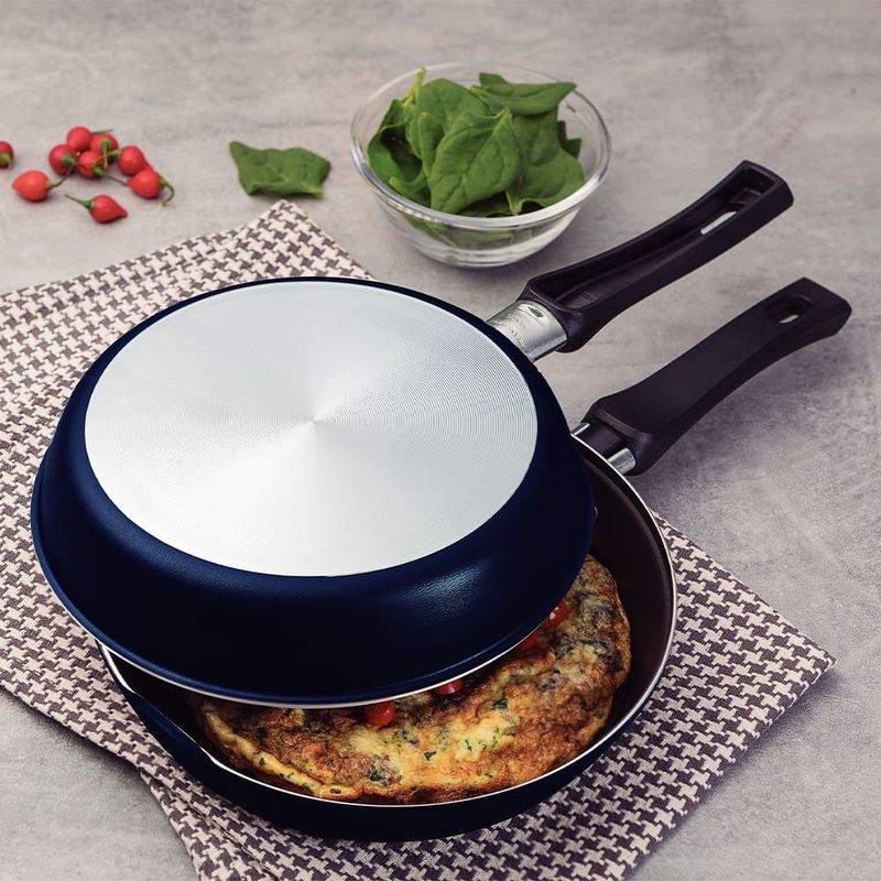 Praticidade e Qualidade no Preparo do Seu Café da ManhãCom a omeleteira Tramontina Ravena, preparar uma omelete deliciosa e cremosa ficou ainda mais simples. Com 20 centímetros de diâmetro, ela é fabricada em alumínio com revestimento interno e externo antiaderente Starflon Max, que evita que os alimentos grudem, proporciona maior durabilidade e é seguro para a saúde. Ideal para o uso diário, essa omeleteira torna o preparo mais rápido e eficiente, elevando a experiência na cozinha logo nas primeiras horas do dia.Conforto, Segurança e Facilidade na LimpezaAlém de eficiente, a omeleteira Ravena conta com cabos em baquelite antitérmico, que não aquecem durante o uso e garantem um manuseio seguro e confortável. Outro destaque é a facilidade de limpeza: o revestimento antiaderente facilita a remoção dos resíduos e o item pode ser levado à máquina de lavar louças. A omeleteira Ravena é a escolha perfeita para quem valoriza funcionalidade, conforto e praticidade no preparo das refeições.