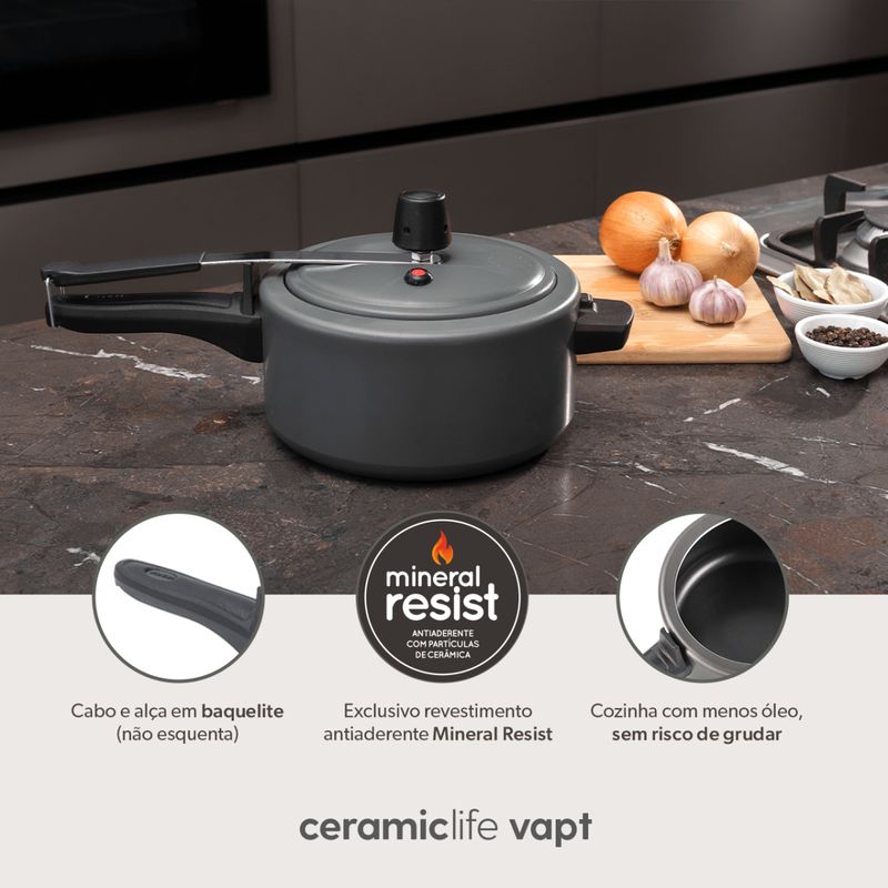 Invista em eficiência, saúde e segurança com a Panela de Pressão Brinox Ceramic Life Vapt 3L. A escolha ideal para quem valoriza uma cozinha moderna e funcional!