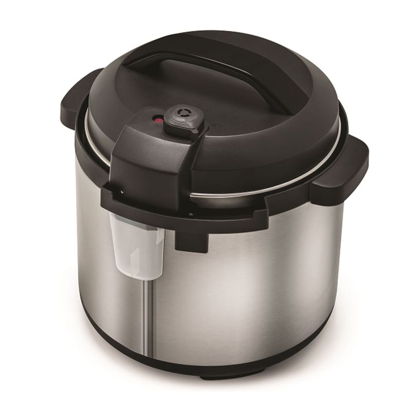 A Panela de Pressão Elétrica Electrolux Experience PCC20 assinada pela Chef Rita Lobo traz praticidade e maior segurança no preparo das refeições, tornando suas receitas deliciosas e saudáveis. Com as 15 receitas e modos de cozimento pré-programados, ela descomplica o preparo de pratos conhecidos. Faça saborosas carnes, mandioca e outras receitas com a facilidade de um toque. Além disso, os 3 níveis diferentes de pressão ajudam a alcançar o ponto ideal de cozimento dos alimentos, desde legumes até diferentes tipos de carnes. Selecione a Função Cozimento Lento para extrair o máximo sabor dos preparos de temperatura branda, como barreado e costela. O produto conta com 10 dispositivos de segurança para sua tranquilidade, como o aviso sonoro e o travamento automático da tampa ao atingir a temperatura de pressão. A panela interna antiaderente de 6 litros é ideal para fazer receitas que servem toda a família. Por ser removível e antiaderente, é fácil de limpar. O display em LED oferece a Função Programar Preparo, que permite planejar o início do cozimento de suas receitas com até 24 horas de antecedência, para que você encontre sua refeição pronta no horário que preferir. O cabo elétrico removível facilita o transporte da panela, permitindo colocá-la na mesa para servir seus alimentos com mais praticidade. Com acabamento em aço inox escovado, oferece modernidade, além de ser durável e fácil de limpar.