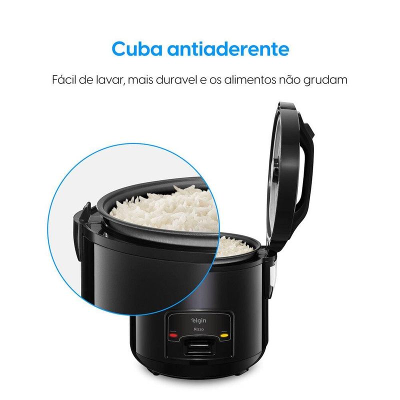 Facilite sua rotina na cozinha com a Panela Elétrica de Arroz Rizzoda Elgin! Com capacidade para 5 xícaras e potência de 400W, ela prepara um arroz soltinho e saboroso em poucos minutos.