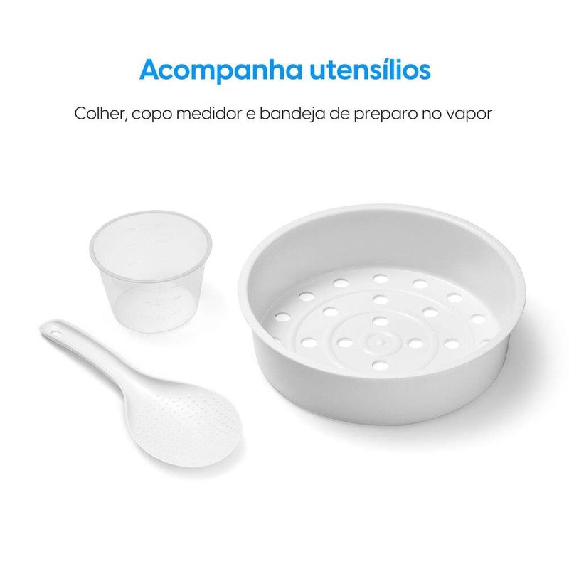 A função 2 em 1 permite cozinhar arroz enquanto prepara outros alimentos no vapor com a bandeja extra inclusa. Com design black piano, adiciona um toque sofisticado à sua cozinha.