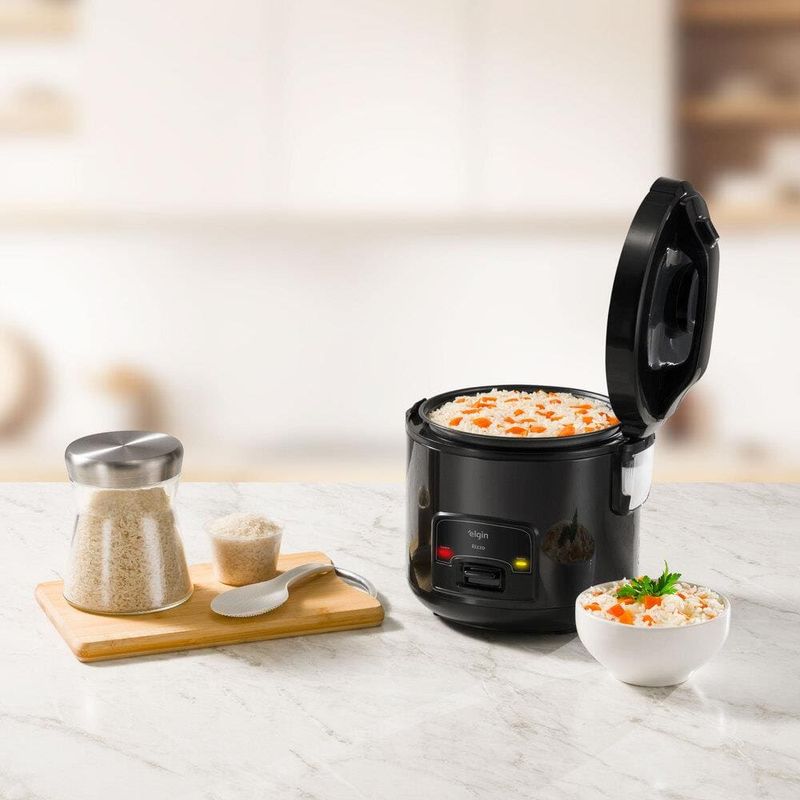 EletroportátilPreparo de AlimentoPanela ElétricaPanela Elétrica de Arroz Elgin Rizzo PAR40 5 Xícaras 1L 400W Cuba Antiaderente Função Aquecer Design Black Piano