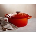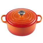 Reconhecida por sua resistência e durabilidade, o ferro fundido é o material ideal para um cozimento lento graças a sua habilidade em manter o calor e de forma homogênea. A panela Redonda Signature não precisa de pré-aquecimento e pode ser também utilizada no forno.