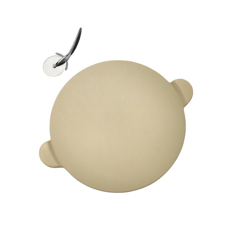 Inclui a pedra da pizza e a cortador em aço inox. A superfície porosa da pedra retira a umidade da massa da pizza, criando uma crosta leve e crocante. Não serve apenas para pizzas, mas você também pode assar pães fantásticos ou até mesmo usá-lo para fazer deliciosos biscoitos.