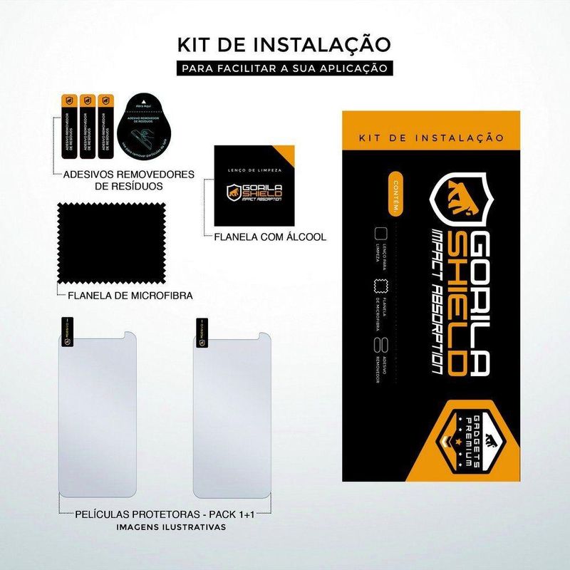 A Película de Vidro Dupla , da Gorila Shield, é uma das mais fortes do mercado, possuindo o Certificado US Military. Fabricado com a melhor tecnologia disponível atualmente, o acessório possui 0,27mm de espessura para proteger a tela do seu aparelho sem alterar a sensibilidade. Além disso, a embalagem conta com duas películas, para que, em caso de riscos ou arranhões na tela, você tenha uma reserva para substituir imediatamente.