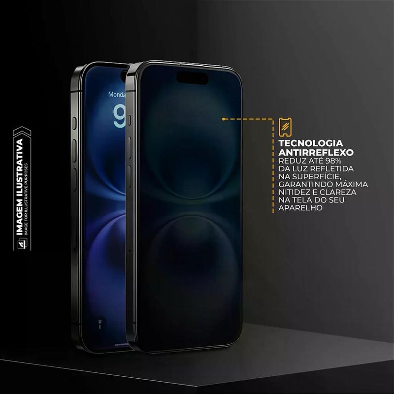 O grande diferencial está na tecnologia fosca antirreflexo, que reduz significativamente o brilho de luzes externas, permitindo que você use o celular confortavelmente até mesmo em ambientes muito iluminados ou sob luz solar direta. Além disso, essa tecnologia proporciona uma sensação suave ao toque, garantindo deslizes precisos e confortáveis na tela, ideal para quem utiliza o dispositivo para jogos ou tarefas que exigem maior precisão.