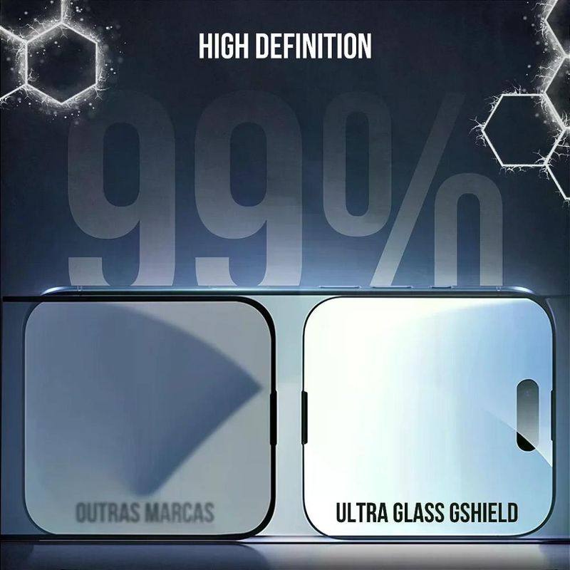 DESCRIÇÃO Proteja seu iPhone 17 com o que há de mais avançado em tecnologia de proteção de tela!A Película Ultra Glass da Gshield foi projetada para entregar máxima resistência, transparência impecável e instalação sem complicações tudo isso com um acabamento sofisticado que se integra perfeitamente ao design do seu aparelho. Fabricada com vidro duplamente temperado, ela oferece uma barreira real contra riscos, arranhões e pequenos impactos do dia a dia. Suas bordas em poliuretano de alta densidade, elevadas em 2 milímetros, garantem maior absorção de impacto e protegem principalmente as laterais da tela região mais propensa a trincas nas películas convencionais. Diferente das opções 3D e 5D apenas pintadas, a Ultra Glass da Gshield traz bordas reais de proteção estrutural, que aumentam sua durabilidade e segurança. O revestimento oleofóbico reduz significativamente marcas de digitais, mantendo a tela sempre limpa e com toque suave. Além disso, a Ultra Glass conta com grau de transparência de 99% (High Definition), permitindo que você aproveite cores vivas e nitidez total, sem distorções ou reflexos indesejados. A instalação é prática e precisa, graças ao molde de alinhamento incluso, que posiciona a película perfeitamente sobre a tela, mesmo em mãos leigas. Sua espessura de 0,35 mm mantém a sensibilidade original do toque, sem comprometer a experiência de uso. Testada sob rigorosos padrões de qualidade, a Película Ultra Glass Gshield foi desenvolvida com tecnologia anti-impacto e materiais de alta performance, oferecendo proteção reforçada contra quedas acidentais, batidas e impactos do cotidiano. Seja em ambientes urbanos ou em situações mais extremas, ela garante maior segurança para a tela do seu aparelho. Seu recorte preciso cobre toda a área útil da tela, com ajustes sutis nas bordas que permitem o uso simultâneo com capas protetoras, evitando que a película levante ou descole com o tempo. É a combinação ideal entre proteção total e compatibilidade com o seu estilo de uso. ESPECIFICAÇÕESMaterial: Vidro Duplamente Temperado - Bordas em poliuretanoMarca: Gshield - ( Gorila Shield )Espessura: 0,35mm Proteção: Contra pequenos impactos e riscos à telaGrau de transparência: 99% High DefinitionCertificações: US MilitaryDimensões: Cobre as dimensões da tela, podendo existir leves recuos para melhor utilização com capasCor: Bordas PretasCOMPATIBILIDADEiPhone 17ITENS INCLUSOS1x Película Ultra GlassKit de instalaçãoGARANTIA3 meses contra defeitos de fabricação + Garantia Vitalícia Co-ParticipativaA Gshield não se responsabiliza por eventuais danos provenientes de quedas acidentais e impactos. Aconselhamos para uma proteção completa, a compra do plano de cobertura contra quebras Gorila Care.