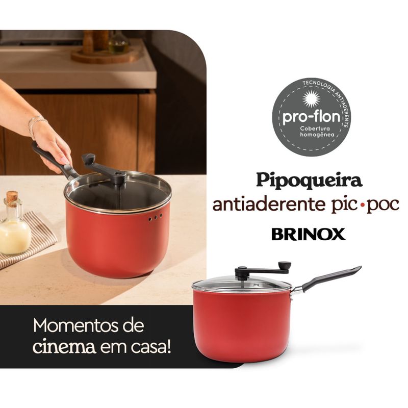 Pipoqueira Brinox Pic Poc Especiarias Antiaderente Pro-Flon 4,2 Litros Cereja
