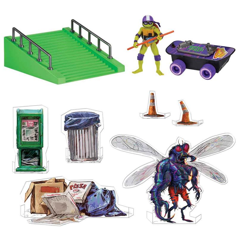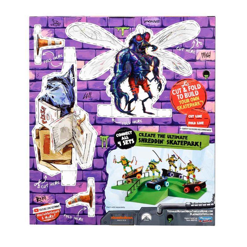Inspirados no filme "As Tartarugas Ninja: O Caos Mutante", colecione cada um dos 4 conjuntos com boneco e pista de skate das Tartarugas Ninja. Cada boneco possui detalhes autênticos e é altamente articulado. Utilize a pista para fazer manobras incríveis e derrotar os vilões. Você pode personalizar e criar seu próprio skatepark exclusivo cortando os bonecos e acessórios inclusos no conjunto. Ao adquirir todos os 4 conjuntos "Build N' Shred Skatepark", você poderá juntar suas pistas para criar um skatepark completo (Cada um vendido separadamente).