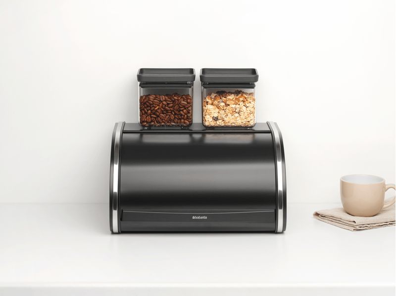 O Porta pão Roll Top médio da Brabantia é a união perfeita entre elegância e funcionalidade. Seu design retrátil com tampa plana é ideal para otimizar espaços na cozinha, enquanto o fundo texturizado promove circulação de ar e conserva o frescor do pão.
