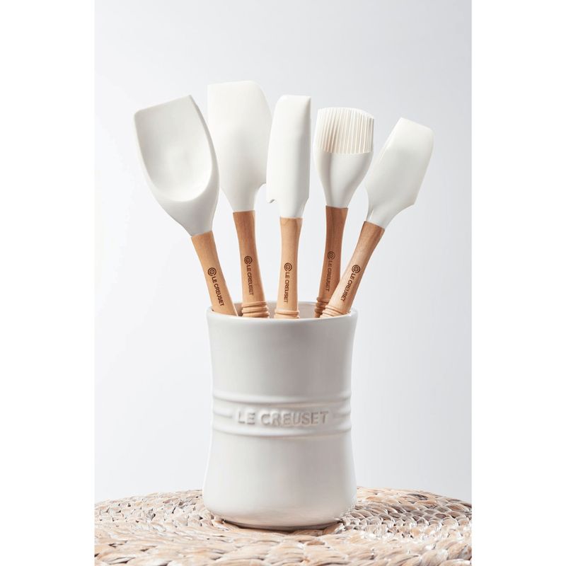 O Porta Utensílio Signature de cerâmica libera espaço precioso na gaveta e mantém os utensílios organizados e acessíveis com estilo. Confeccionado em uma cerâmica premium e finalizado com um esmalte vibrante que é fácil de limpar, pode ser lavado na máquina de lavar louça e resistente a lascas, arranhões e manchas.