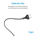 Cabo 360° de 1,8 metros com alça que possibilita maior liberdade de movimento com seu produto e praticidade para pendurá-lo em lugar seguro durante o seu uso.