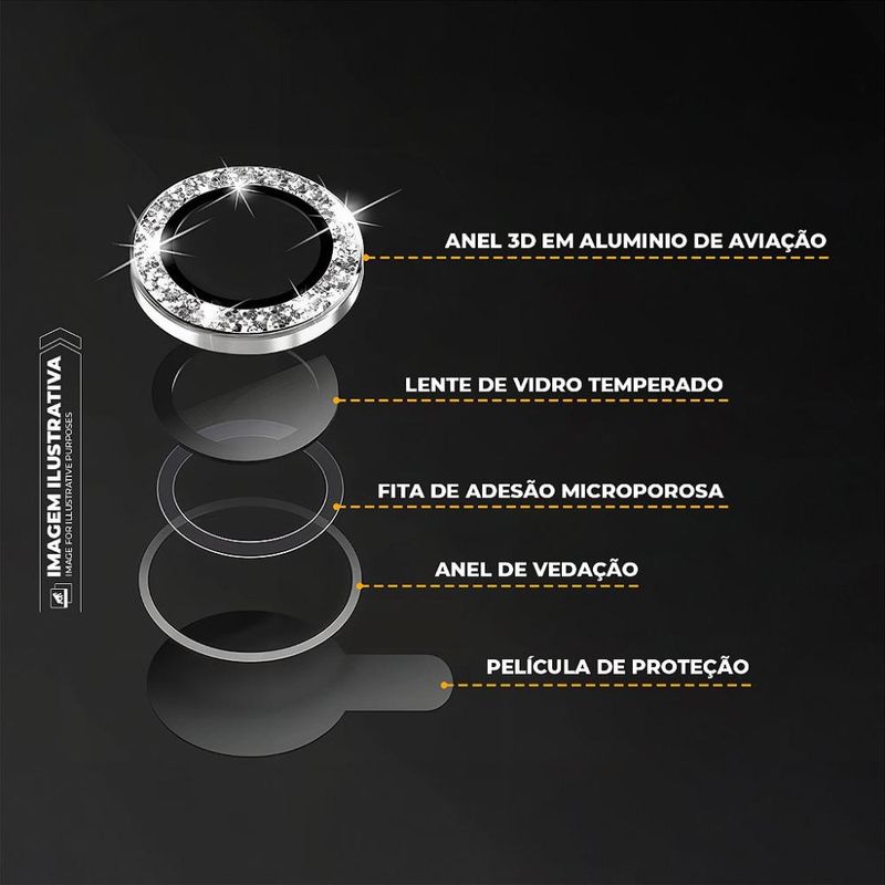 DESCRIÇÃO Eleve o nível da proteção e do estilo do seu smartphone com o Protetor de Lente One Armor Glitter da Gshield. Desenvolvido com materiais premium e design sofisticado, ele oferece uma blindagem completa para as lentes da câmera, sem comprometer a estética do seu aparelho. O anel 3D em alumínio de aviação com acabamento em glitter confere um toque de brilho e exclusividade, valorizando o visual do celular com elegância e personalidade. Além do visual marcante, o One Armor Glitter garante proteção máxima com tecnologia multicamadas. Sua estrutura inclui lente de vidro temperado resistente a impactos, anel de vedação, fita de adesão microporosa e película de proteção, formando um escudo eficaz contra arranhões, quedas e sujeira. O encaixe preciso se adapta perfeitamente ao módulo da câmera, mantendo a usabilidade e a qualidade original das imagens, sem interferências ou distorções. Leve, fino e altamente resistente, o One Armor Glitter é a escolha ideal para quem quer proteger as lentes do celular com segurança e estilo. Com instalação simples e firme, ele permanece fixo mesmo com o uso diário e garante que você possa fotografar e gravar vídeos com confiança, sabendo que suas lentes estão seguras e protegidas. Destaque-se com brilho e garanta a durabilidade do seu aparelho com o Protetor de Lente One Armor Glitter da Gshield. Mais do que proteção: é elegância com tecnologia de ponta. ESPECIFICAÇÕES Material: Alumínio + polímero termoplástico que simula vidro Marca: Gshield- Cor: Glitter Proteção: Contra pequenos impactos e riscos à câmera Espessura: 0.3mm entre lente e estojo - Compatível com a maioria das capas. Fácil instalação. Imagens capturadas no modo grande angular com o uso do protetor de câmera podem apresentar bordas sombreadas.