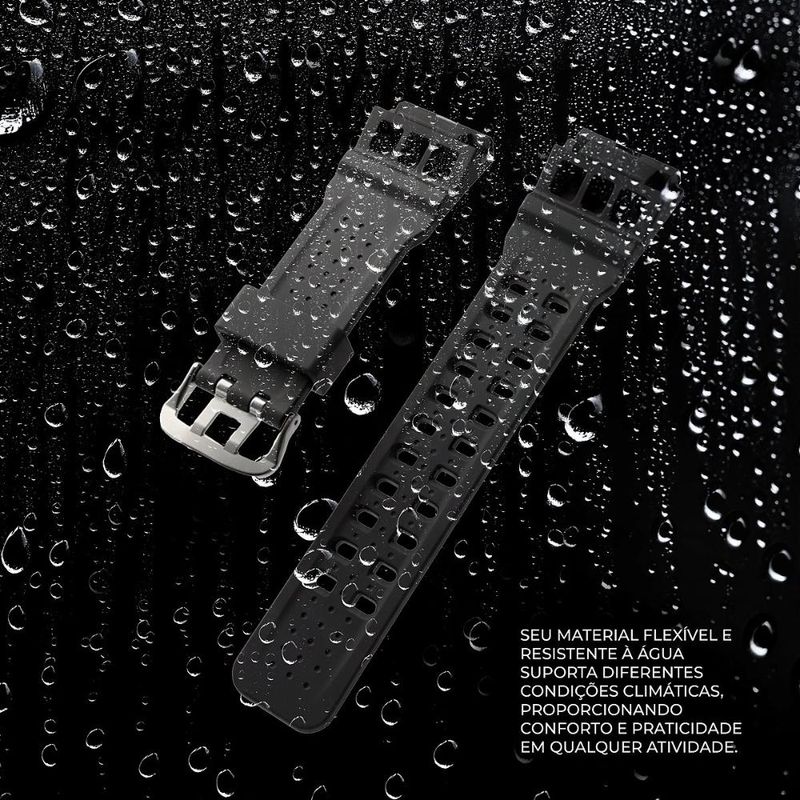 Com design esportivo e acabamento texturizado, a pulseira garante ajuste firme e confortável, ideal tanto para treinos intensos quanto para o uso diário. Seu material flexível e resistente à água suporta diferentes condições climáticas, proporcionando conforto e praticidade em qualquer atividade.
