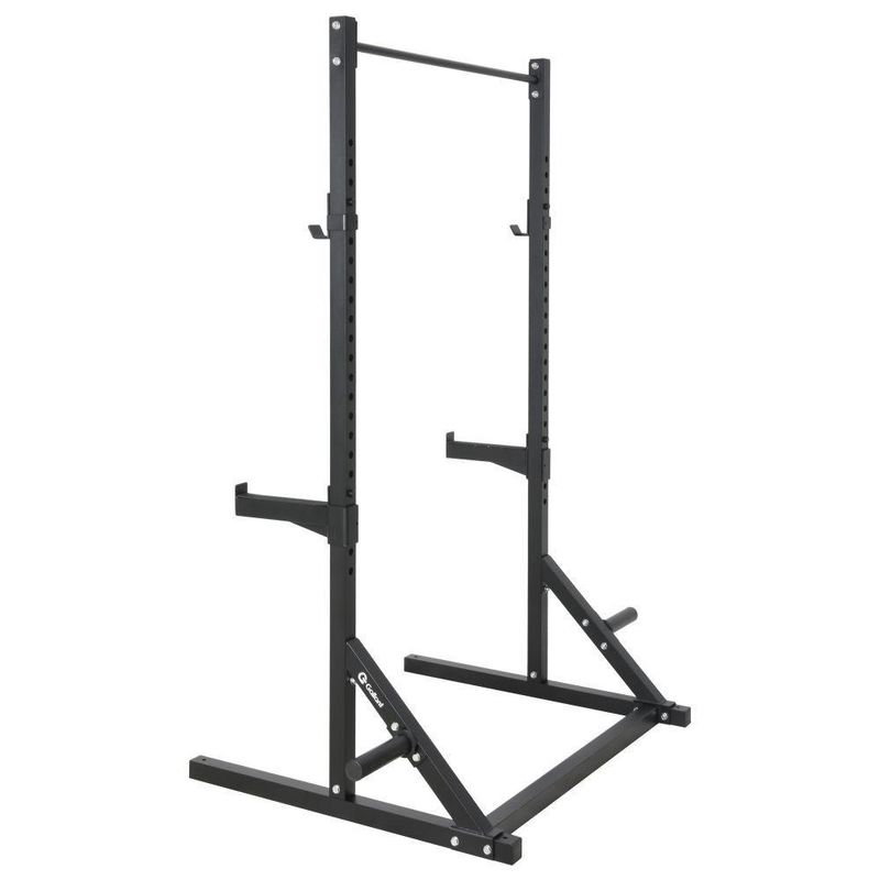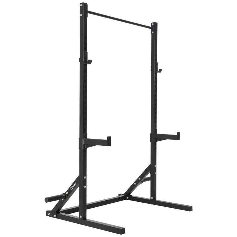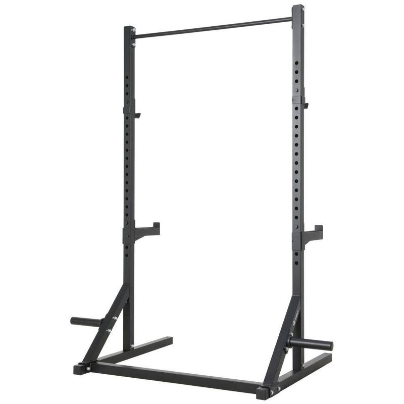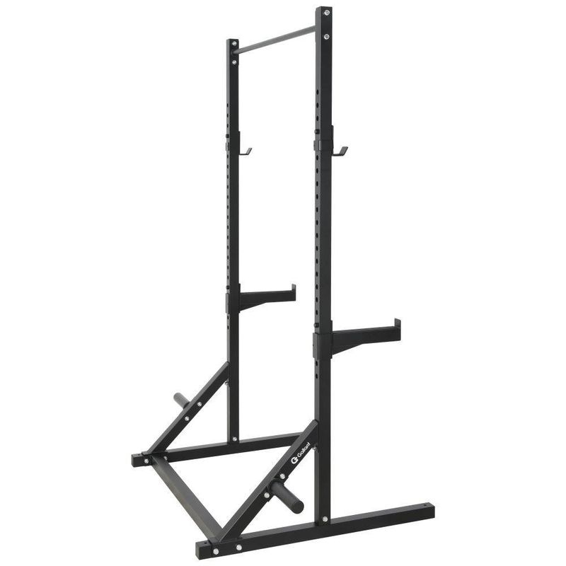 - Indispensável para o seu treino: inclui 2 colunas de 2,36 m, 2 suportes para barra olímpica (j-hooks), 1 suporte para pull-up, 1 travessa superior, 2 travessas de base com acabamento emborrachado e kit de parafusos.