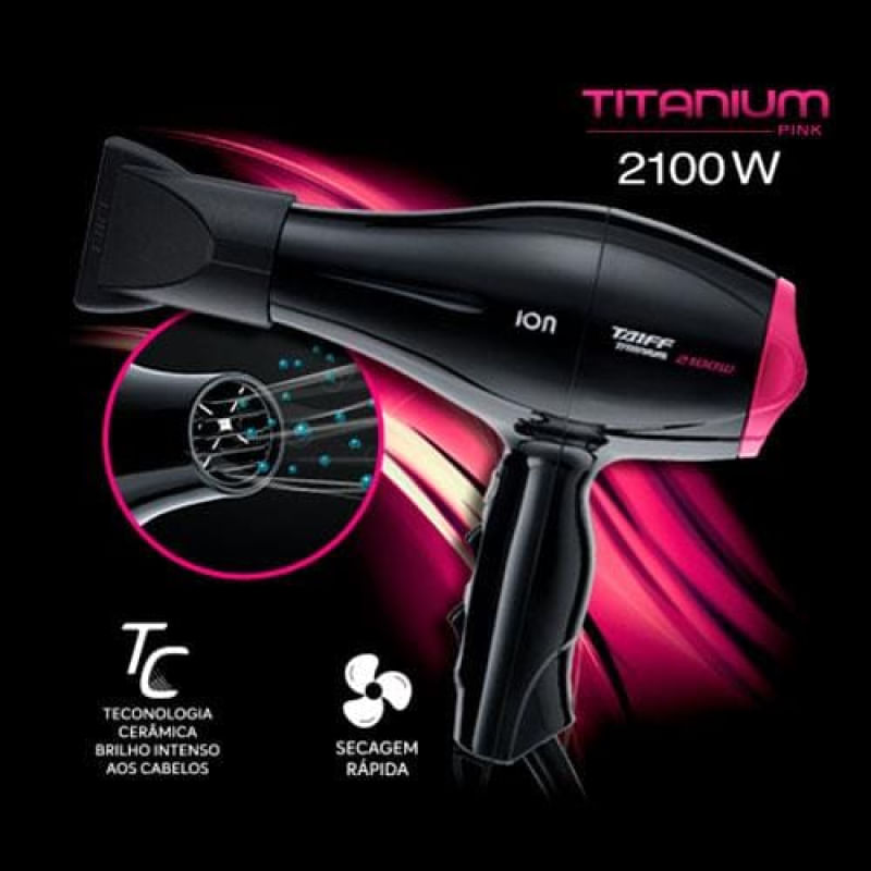 Secador de Cabelos Taiff Titanium Colors com Emissão de Íons Motor AC Profissional Preto/Rosa 2100W