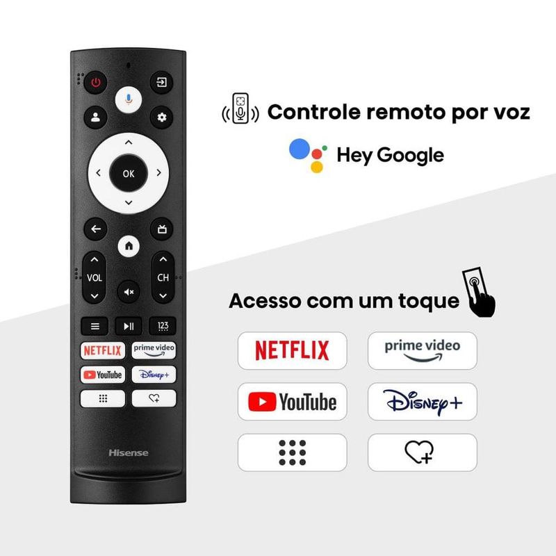 Entre no mundo da resolução 4K UHD com esta Smart TV de 55" da Hisense e nunca mais veja TV da mesma forma. Imagens com até quatro vezes mais pixels do que as TVs Full HD tradicionais. Cada cena ganha vida com clareza impressionante e cores vibrantes que proporcionam uma experiência visual verdadeiramente imersiva. A tecnologia de tela Mini LED da Hisense eleva ainda mais o padrão, oferecendo uma iluminação de fundo mais precisa e uniforme, resultando em um contraste excepcional e pretos mais profundos. Além disso, a Hisense 55U66LUA vem equipada com o sistema operacional Google TV, que oferece acesso a uma infinidade de aplicativos, jogos e conteúdo online para atender a família toda. Com 2 entradas USB e 4 entradas HDMI você vai conectar todos os seus dispositivos, desde consoles de jogos até reprodutores de mídia. Além disso, possui AV IN, saída de áudio digital e Bluetooth Áudio para conectar fones sem fios. Seja para montar na parede ou colocar em um suporte, o padrão do furo para instalação (400 x 200 mm) oferece flexibilidade e praticidade para adaptar a TV ao seu espaço com facilidade e elegância.