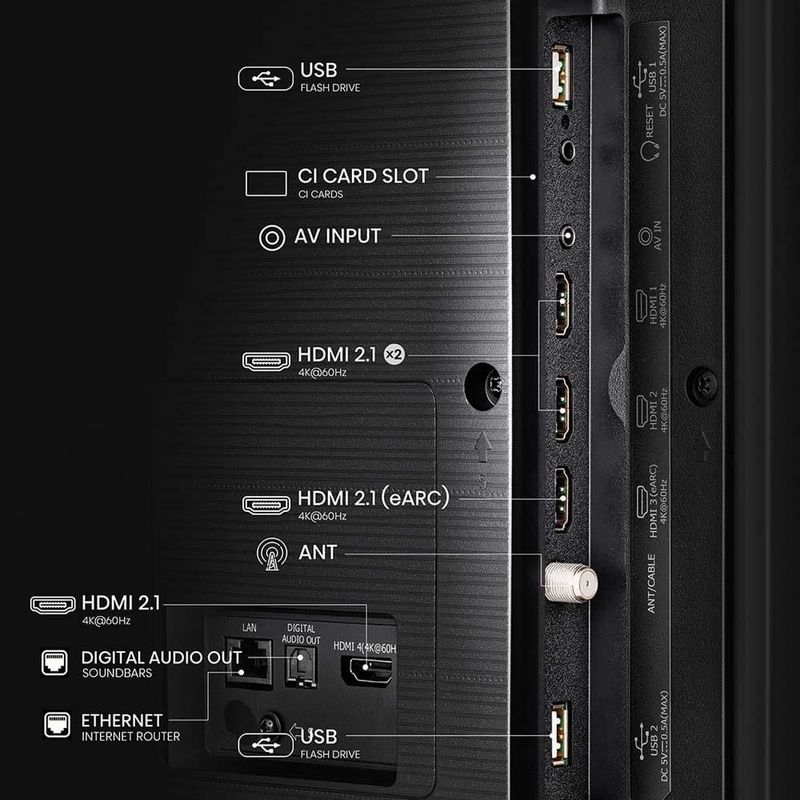 Conecte seus dispositivos favoritos com as 2 entradas USB e 4 entradas HDMI, podendo conectar videogames, aparelhos multimídia e notebooks. A TV também possui Wi-Fi integrado para que você possa acessar conteúdo online. Além disso, conta com Bluetooth Áudio para conectar seus fones de ouvido.