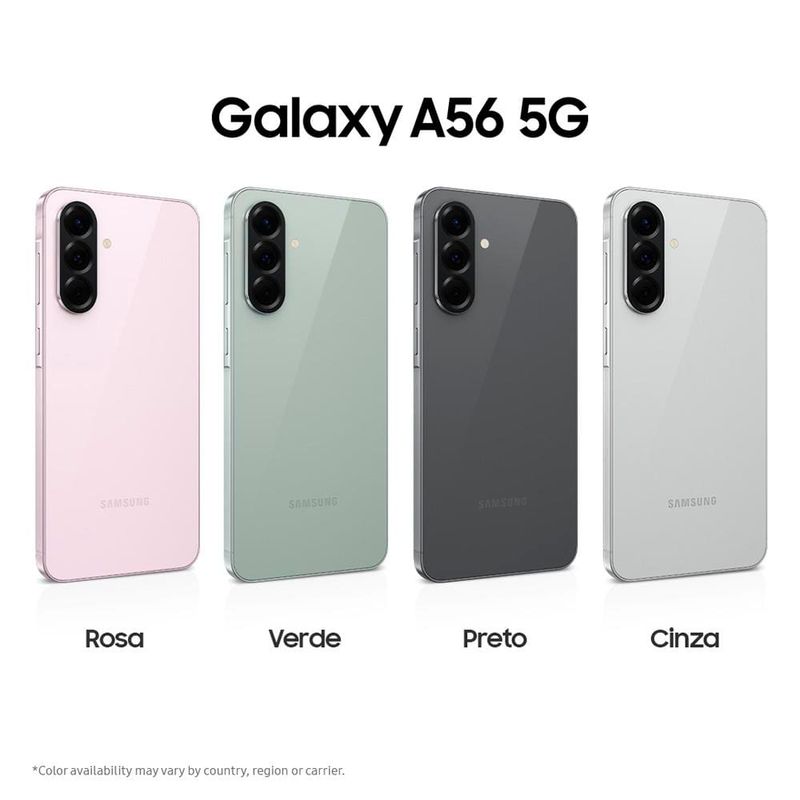 -Smartphone Samsung Galaxy A56, 5G, Preto 256GB, 8GB RAM, Câmera Tripla de até 50MP, Selfie de 12MP, Tela Super AMOLED 6.7", IP67, NFC, Vídeo HDR e Recursos AI;