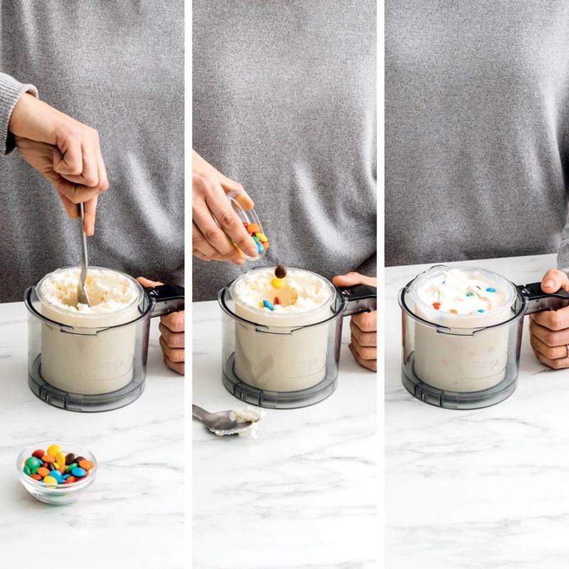 - Comece com uma mistura líquida de ingredientes, depois congele durante a noite e por fim, coloque o conteúdo na máquina