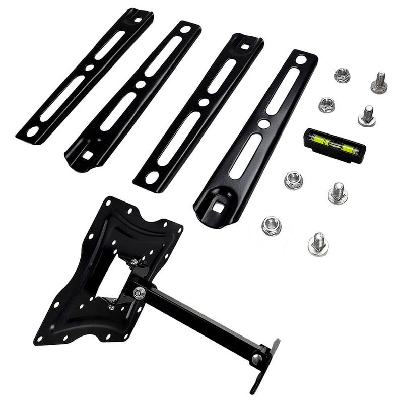 O suporte para TV já vem de fábrica pré montado e com todos os acessórios necessários, incluindo buchas, parafusos, porcas, arruelas e um nível bolha para garantir o alinhamento correto do seu suporte e a instalação pratica e rápida da sua TV.