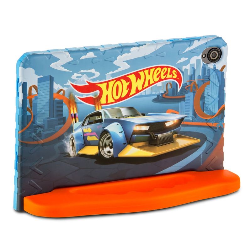 O Tablet Infantil Hot Wheels vem com uma case emborrachada e com alça que protege o dispositivo e garante mais conforto e segurança, acompanha também fone de ouvido!