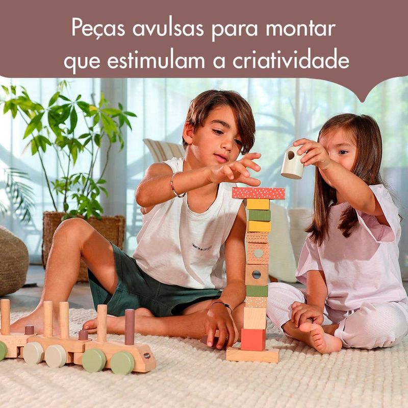 O Trenzinho de Madeira da Tiny Love é uma oportunidade para as crianças explorarem, criarem e aprenderem enquanto se divertem. Seja empilhando, conectando ou imaginando histórias, este trenzinho oferece uma experiência envolvente e educativa.