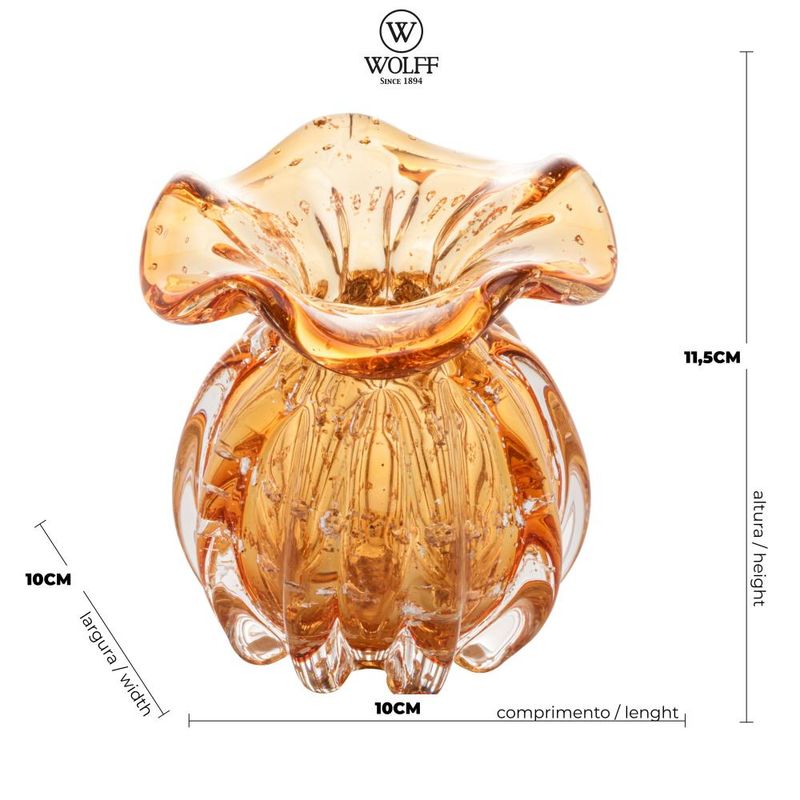 Vaso Wolff Italy de Vidro Âmbar e Dourado 10cm x 11cm
