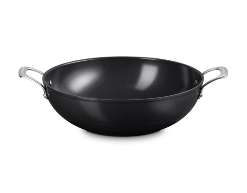 Com laterais arredondadas e capacidade generosa, a Wok com Alça Antiaderente de Cerâmica Essential é ideal para grelhar, saltear e preparar receitas variadas com praticidade. Seu revestimento cerâmico antiaderente de alta performance evita que os alimentos grudem e facilita a limpeza, tornando o preparo mais eficiente. O revestimento cerâmico é uma base natural, livre de PFOA, PFAS e PTFE, que proporciona fácil liberação dos alimentos e limpeza prática. Além disso, é considerado altamente ecológico, com menor emissão de poluentes e consumo reduzido de recursos em sua produção.